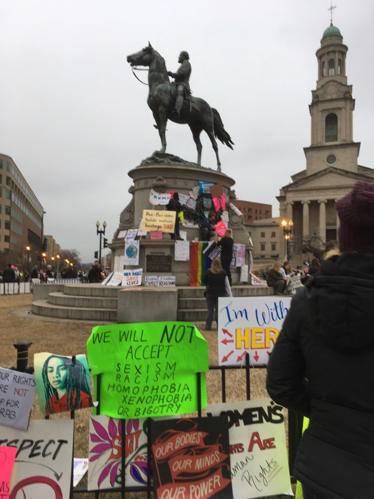 My cell signal was non existent but at one point an alert got through from WA Post saying the march was canceled due to the size of the crowd. Yeah- that didn’t happen. The march took over and headed past Trump’s Hotel (stopping to chant SHAME! and Booo!) then headed to the whitehouse.